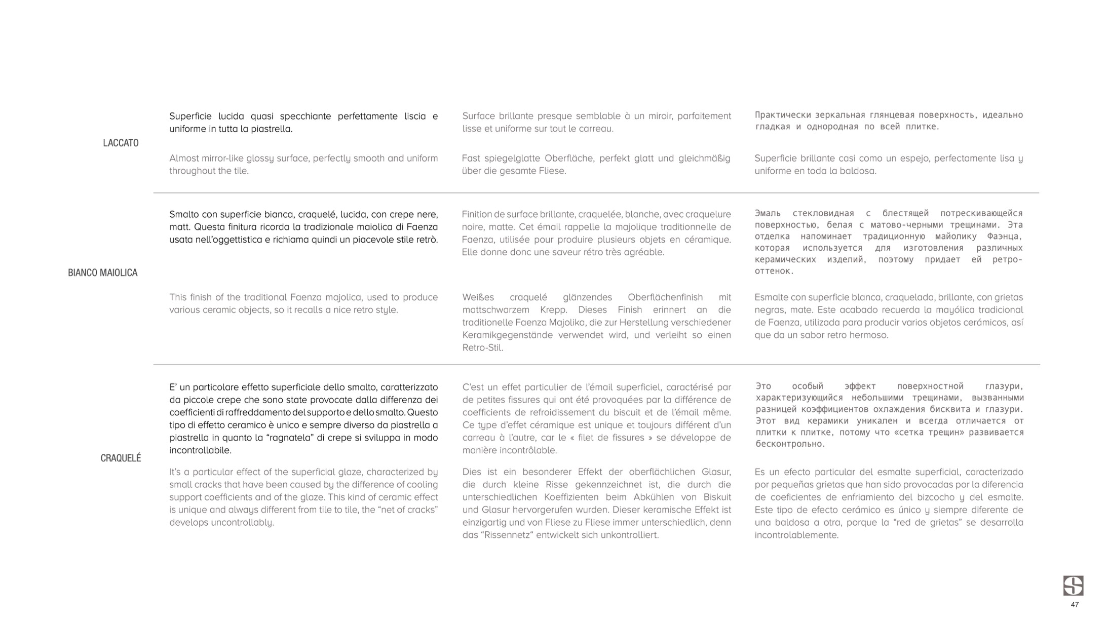 matt. Questa finitura ricorda la tradizionale maiolica di Faenza