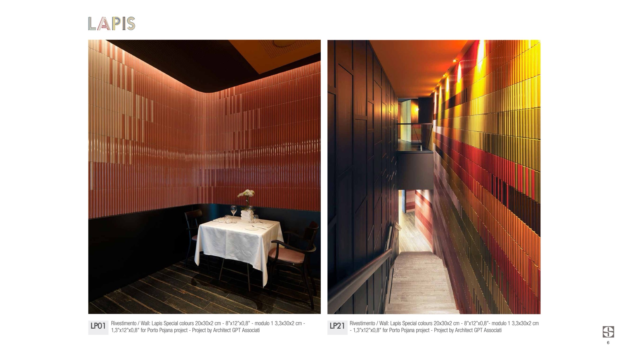 Rivestimento / Wall: Lapis Special colours 20x30x2 cm - 8”x12”x0,8” - modulo 1 3,3x30x2 cm -
