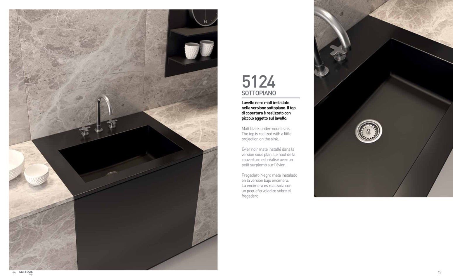 Matt black undermount sink.