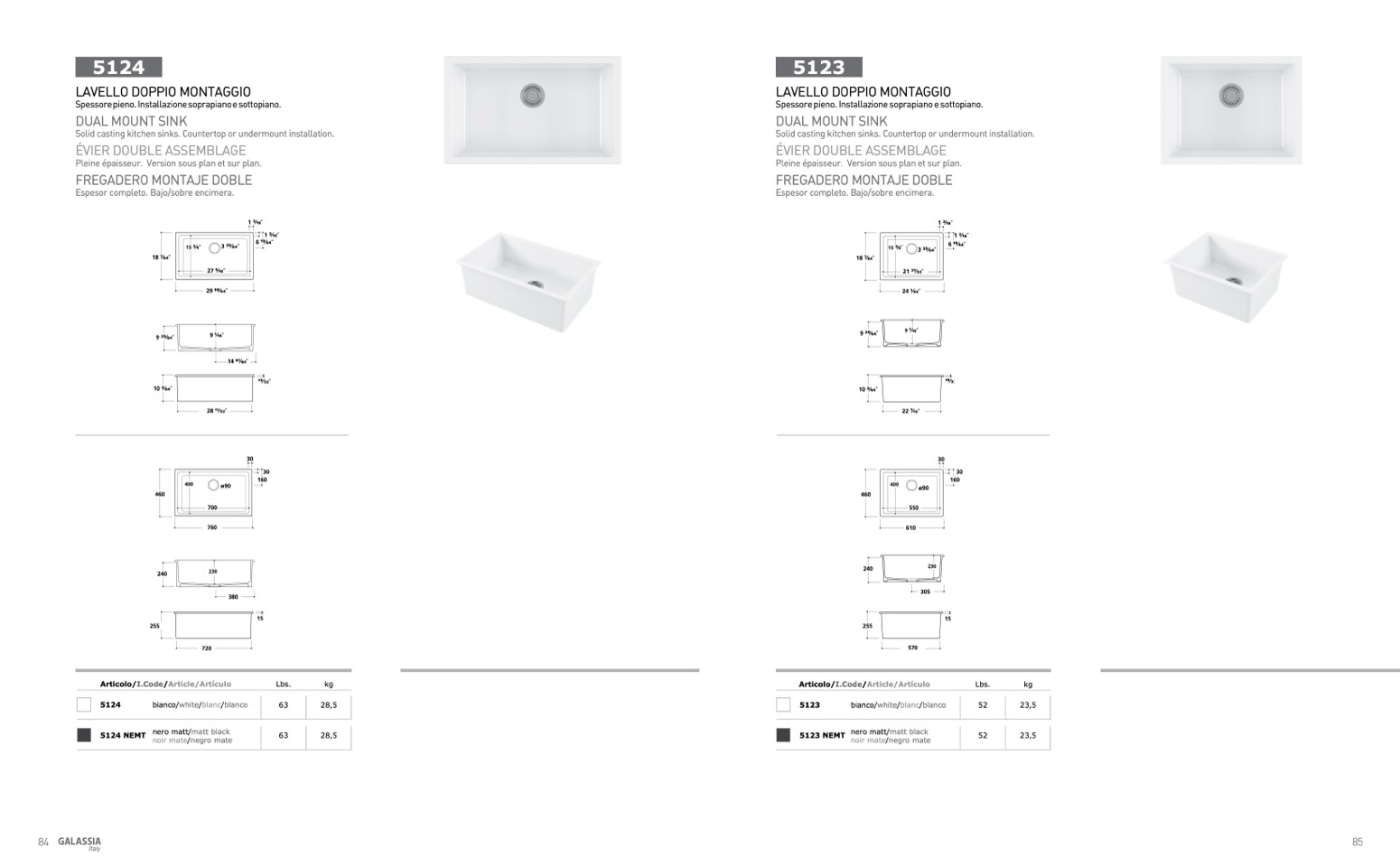 Solid casting kitchen sinks. Countertop or undermount installation.