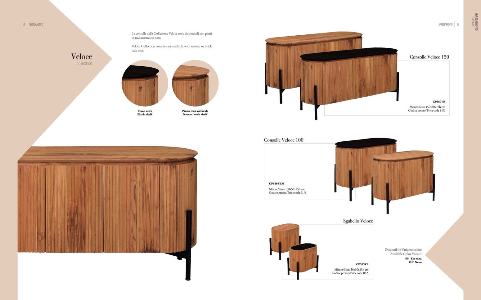 Veloce Collection consoles are available with natural or black