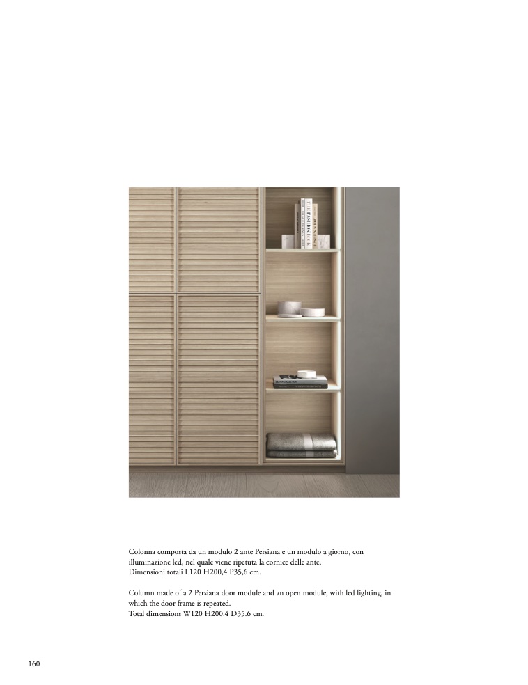 Column made of a 2 Persiana door module and an open module, with led lighting, in
