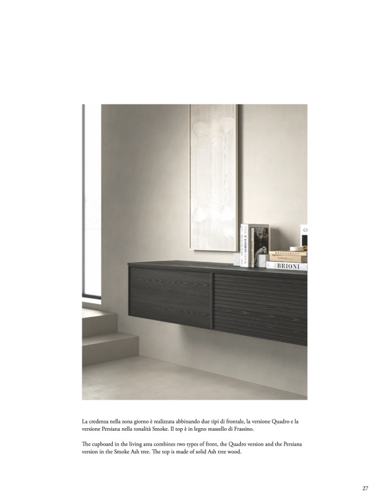 La credenza nella zona giorno è realizzata abbinando due tipi di frontale, la versione Quadro e la