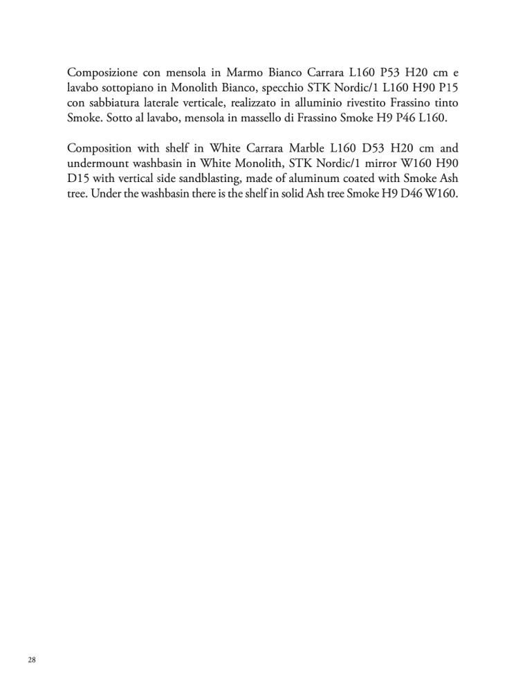 lavabo sottopiano in Monolith Bianco, specchio STK Nordic/1 L160 H90 P15