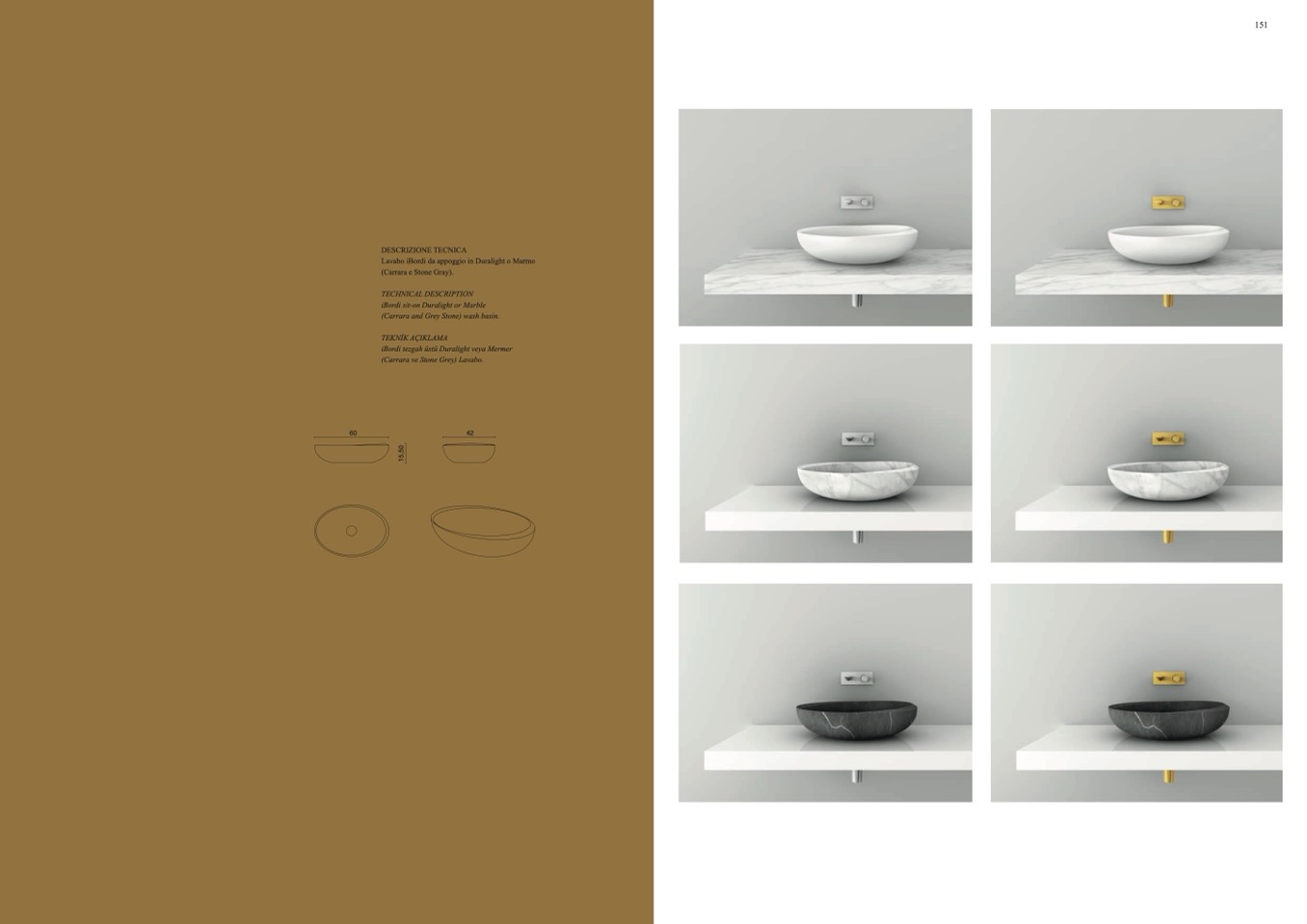 (Carrara ve Stone Grey) Lavabo.