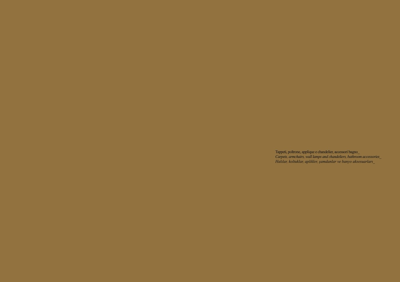Halılar, koltuklar, aplikler, şamdanlar ve banyo aksesuarları_