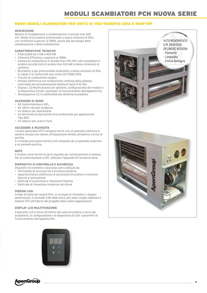 441, dotato di bruciatore premiscelato a basse emissioni di NOx,
