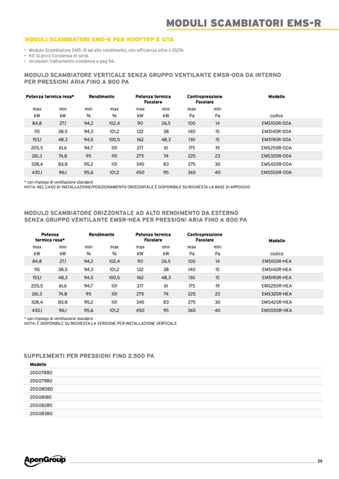 SUPPLEMENTI PER PRESSIONI FINO 2.500 PA