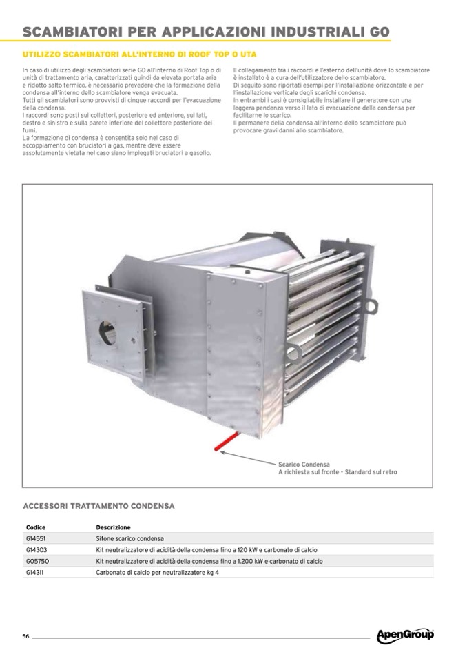 In caso di utilizzo degli scambiatori serie G0 all’interno di Roof Top o di