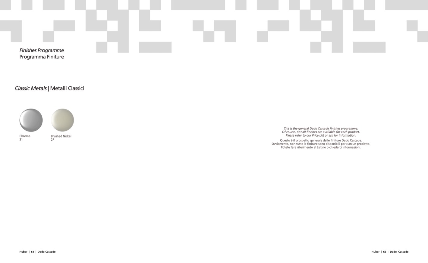 Questo è il prospetto generale delle finiture Dado Cascade.
