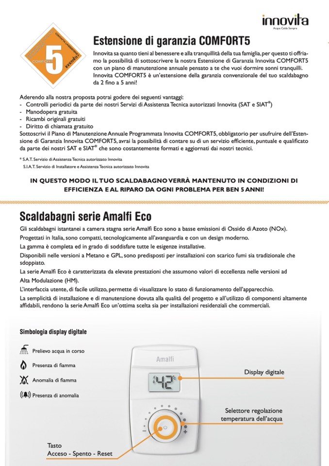 Innovita COMFORT5 è un’estensione della garanzia convenzionale del tuo scaldabagno