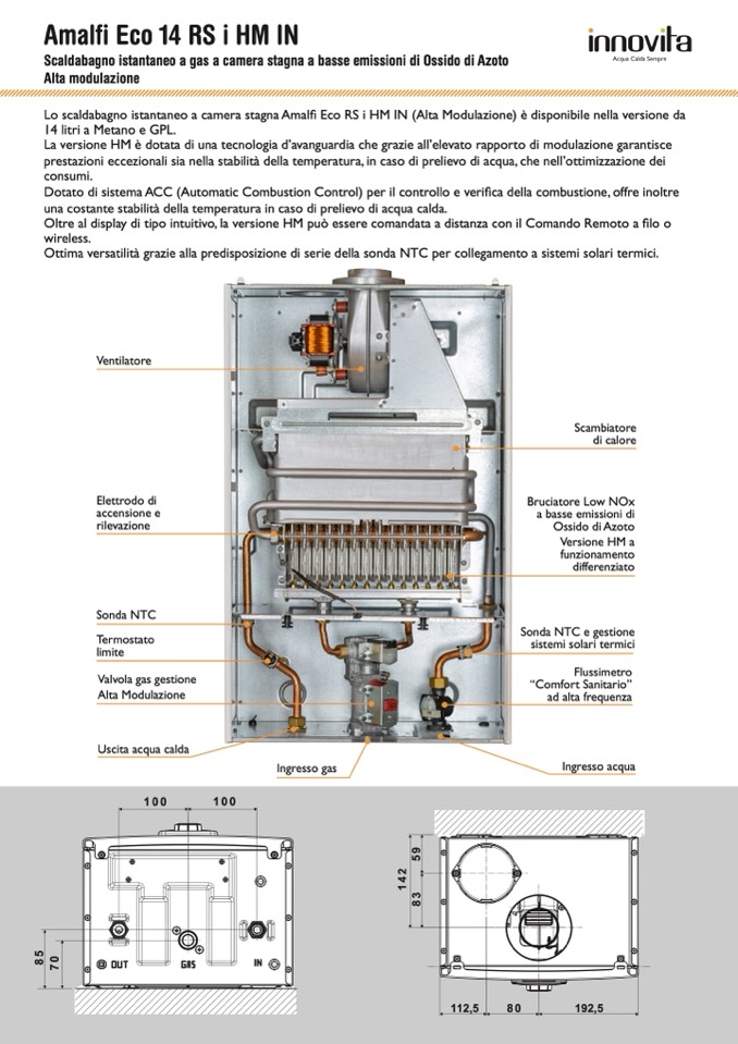 Lo scaldabagno istantaneo a camera stagna Amalfi Eco RS i HM IN (Alta Modulazione) è disponibile nella versione da