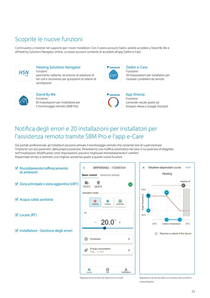all'Heating Solutions Navigator online. Lo stesso account consente di accedere all'app Daikin e-Care.
