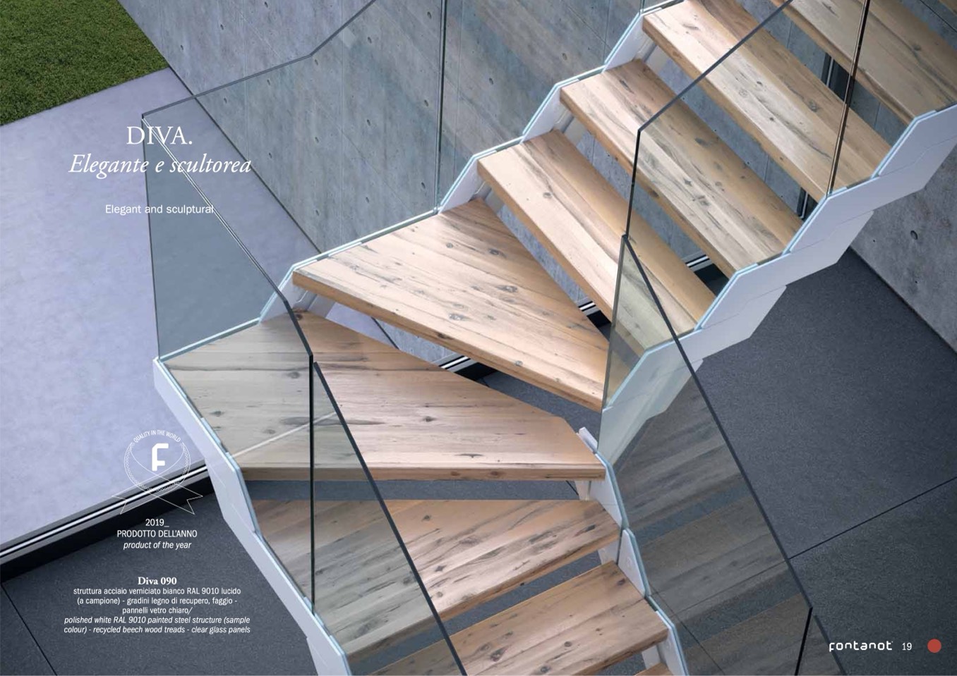 colour) - recycled beech wood treads - clear glass panels