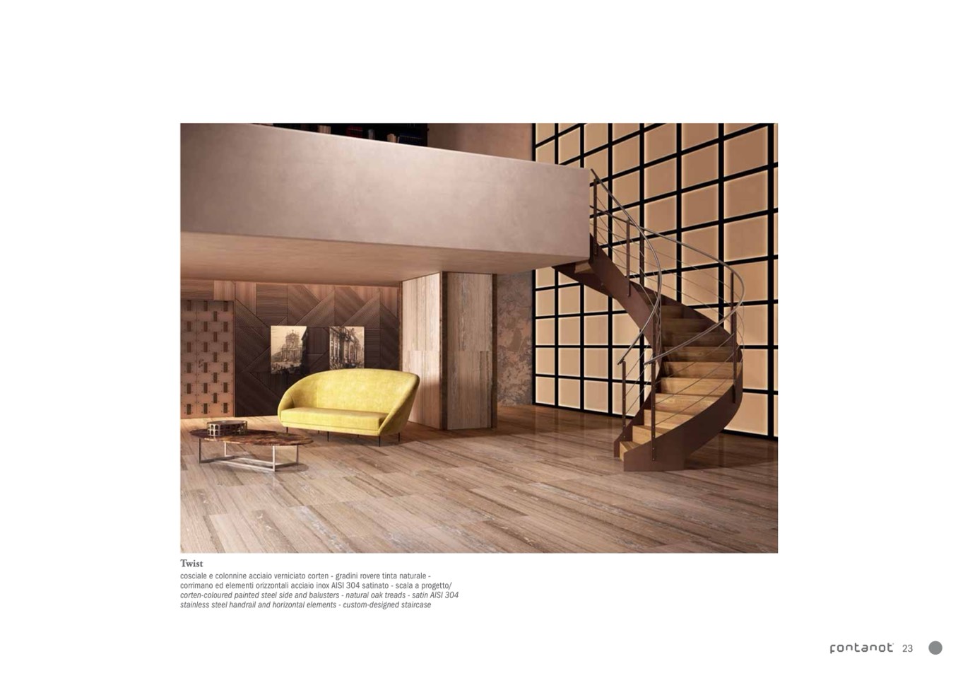 cosciale e colonnine acciaio verniciato corten - gradini rovere tinta naturale -