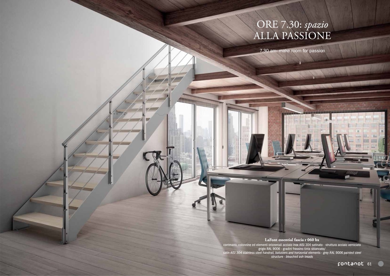 satin AISI 304 stainless steel handrail, balusters and horizontal elements - grey RAL 9006 painted steel