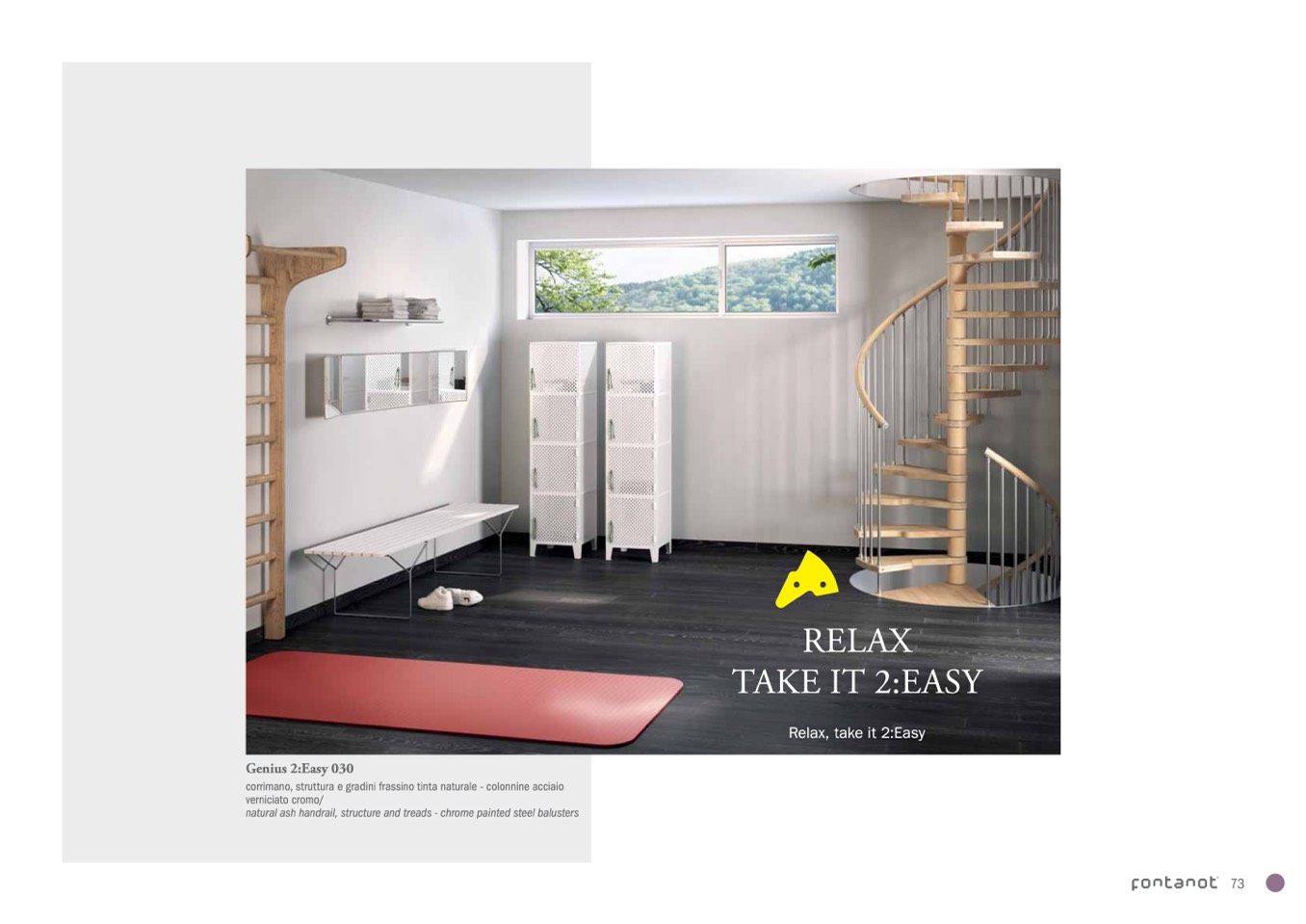 corrimano, struttura e gradini frassino tinta naturale - colonnine acciaio