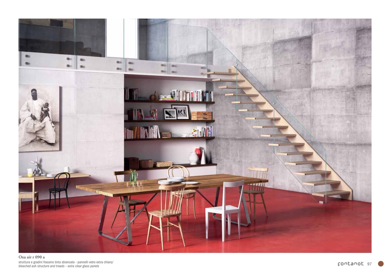struttura e gradini frassino tinta sbiancato - pannelli vetro extra chiaro/