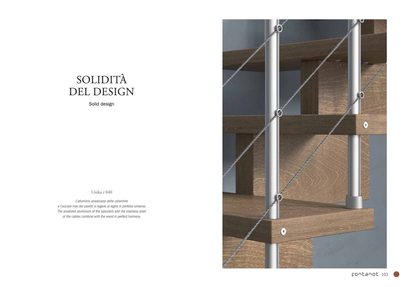 e l’acciaio inox dei cavetti si legano al legno in perfetta sintonia.