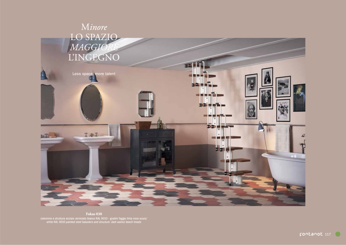 colonnine e struttura acciaio verniciato bianco RAL 9010 - gradini faggio tinta noce scuro/