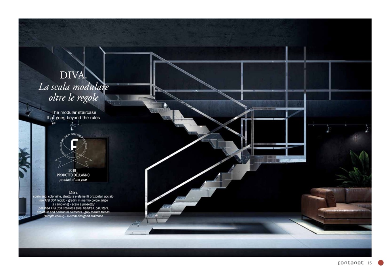 inox AISI 304 lucido - gradini in marmo colore grigio