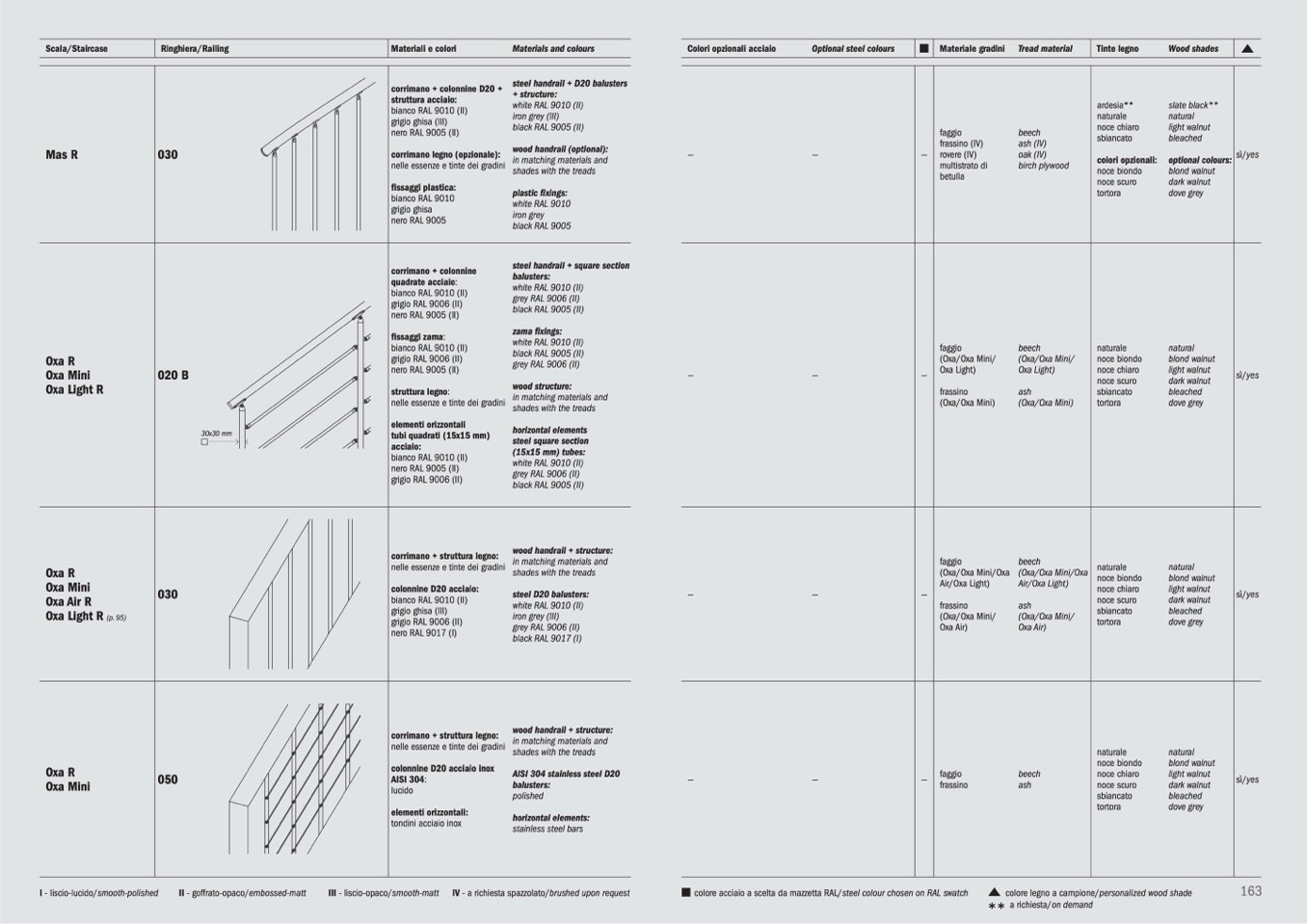nelle essenze e tinte dei gradini