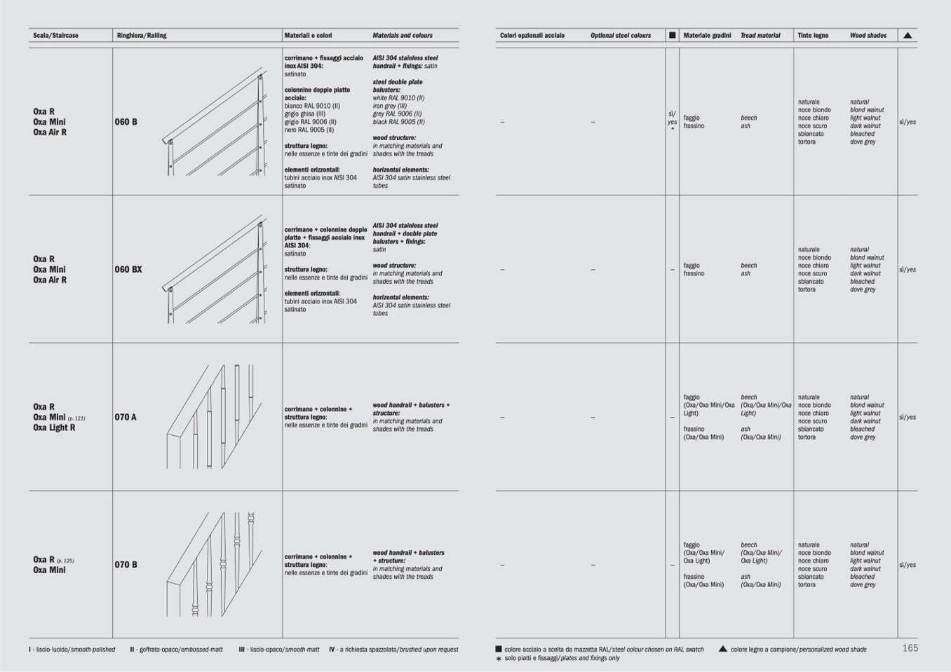 nelle essenze e tinte dei gradini