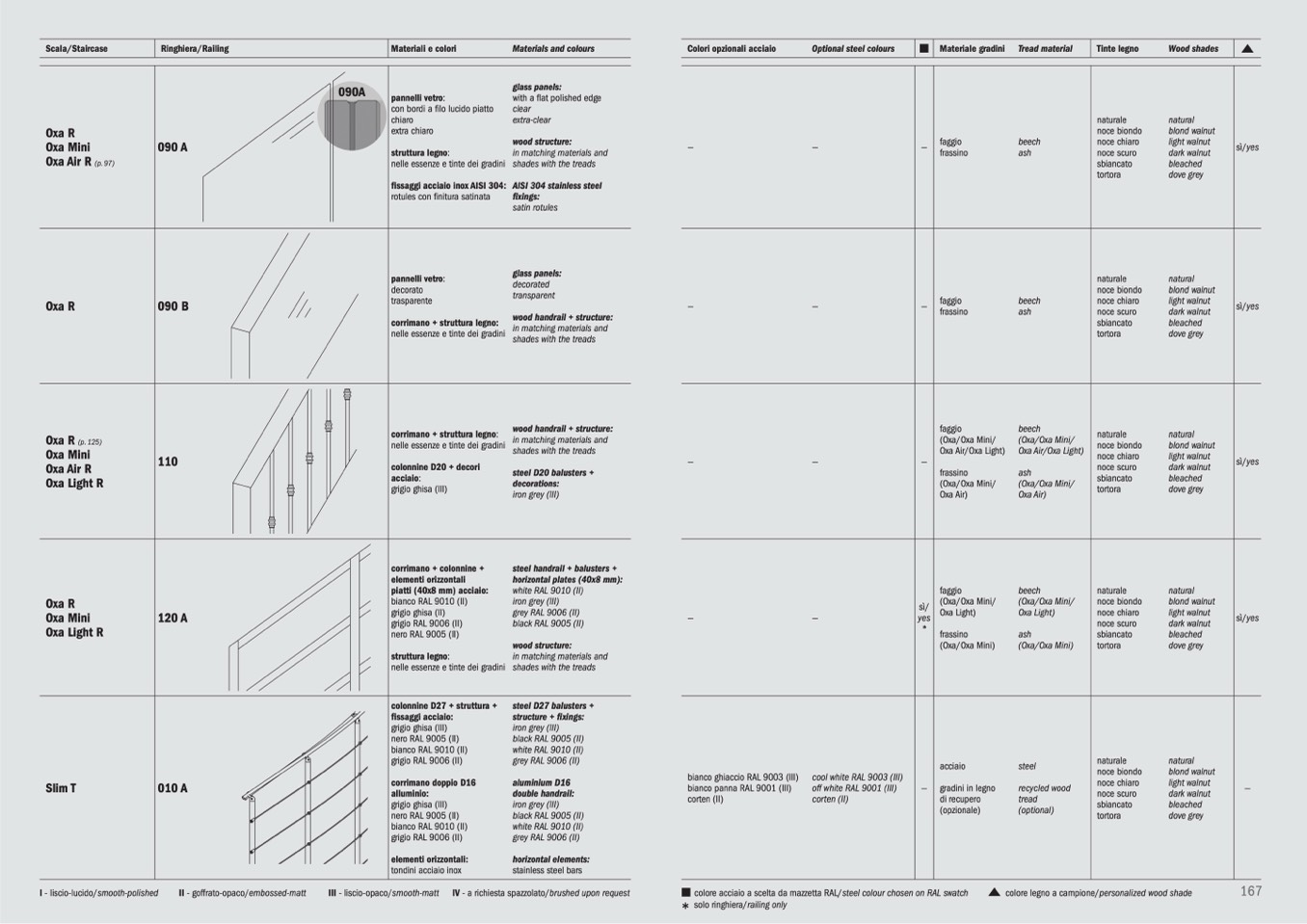 nelle essenze e tinte dei gradini