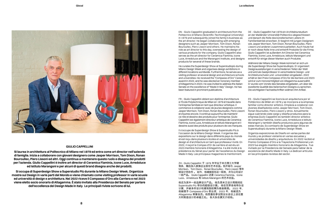 他被授予 Compasso d’Oro 职业奖,2023 年,他被选为