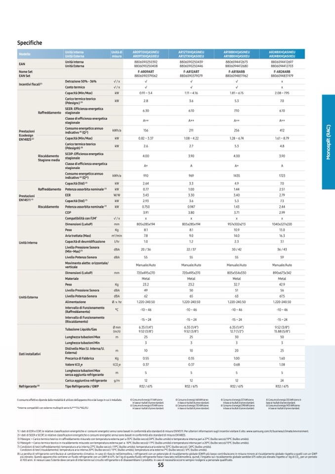 1 I dati di e C, le relative classificazioni energetiche e i consumi energetici annui sono asati in conformit allo standard di misura 111. er ulteriori informazioni sugli incentivi visitare il sito .samsung.comitusinessclimateenvironment.