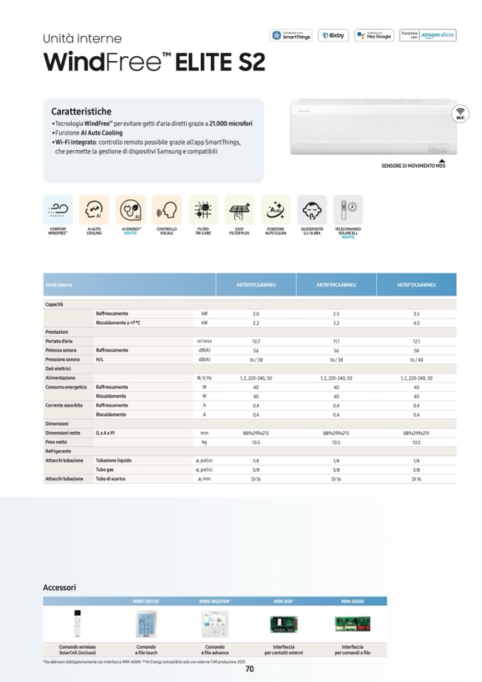 *Da abbinare obbligatoriamente con interfaccia MIM-A00N. **AI Energy compatibile solo con esterne FJM produzione 2025