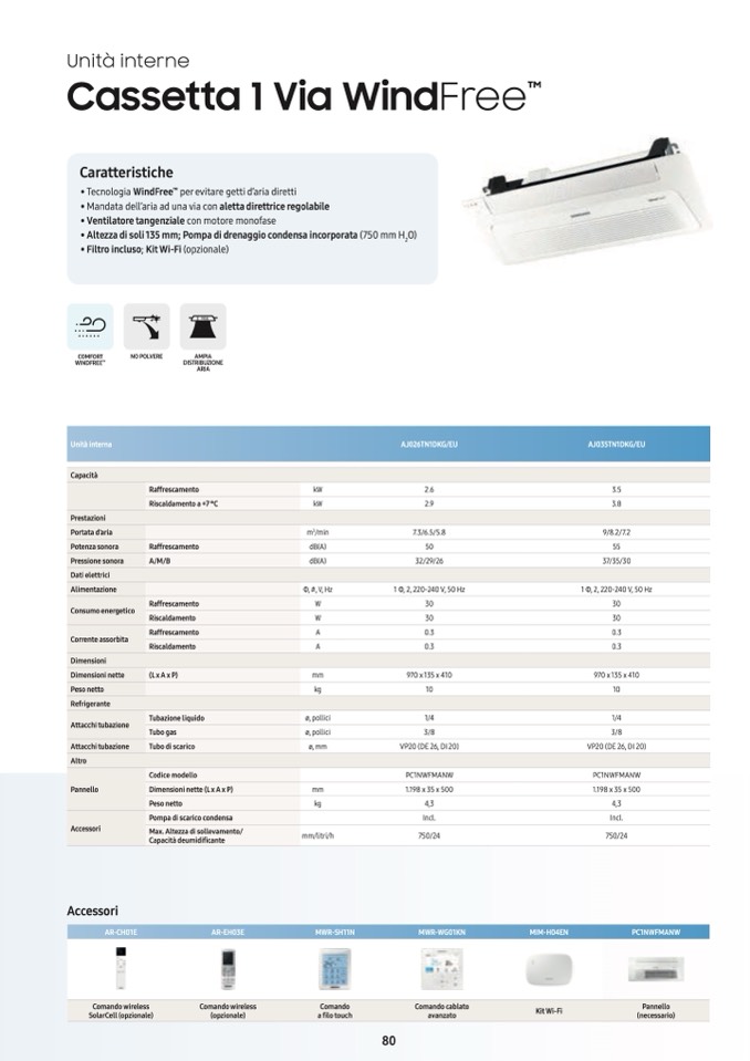 • Altezza di soli 135 mm; Pompa di drenaggio condensa incorporata (750 mm H