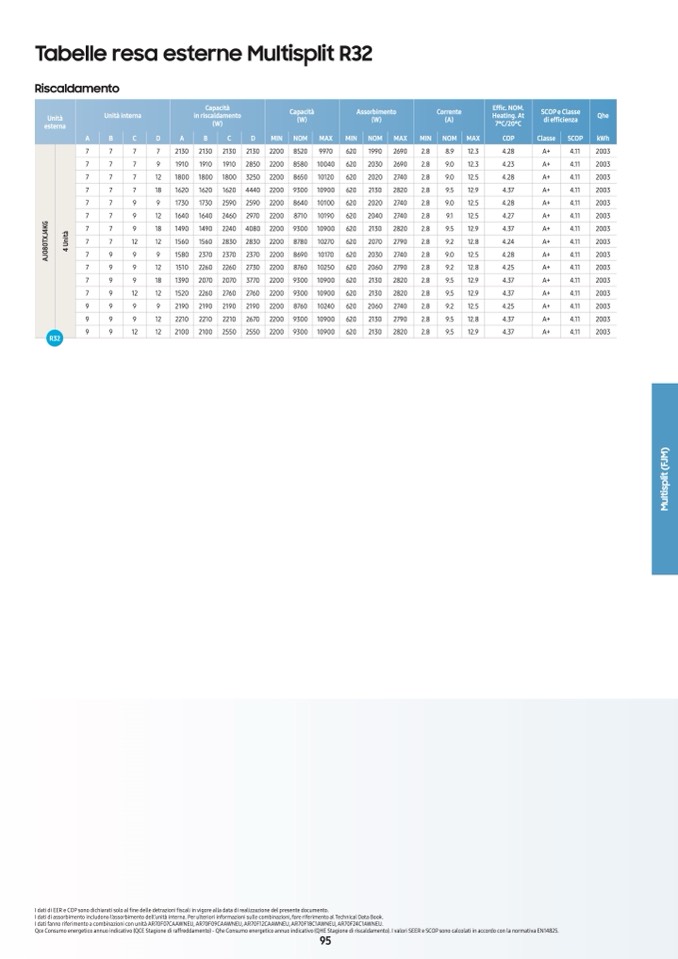 Qce Consumo energetico annuo indicativo (QCE Stagione di raffreddamento) - Qhe Consumo energetico annuo indicativo (QHE Stagione di riscaldamento). I valori SEER e SCOP sono calcolati in accordo con la normativa EN14825.