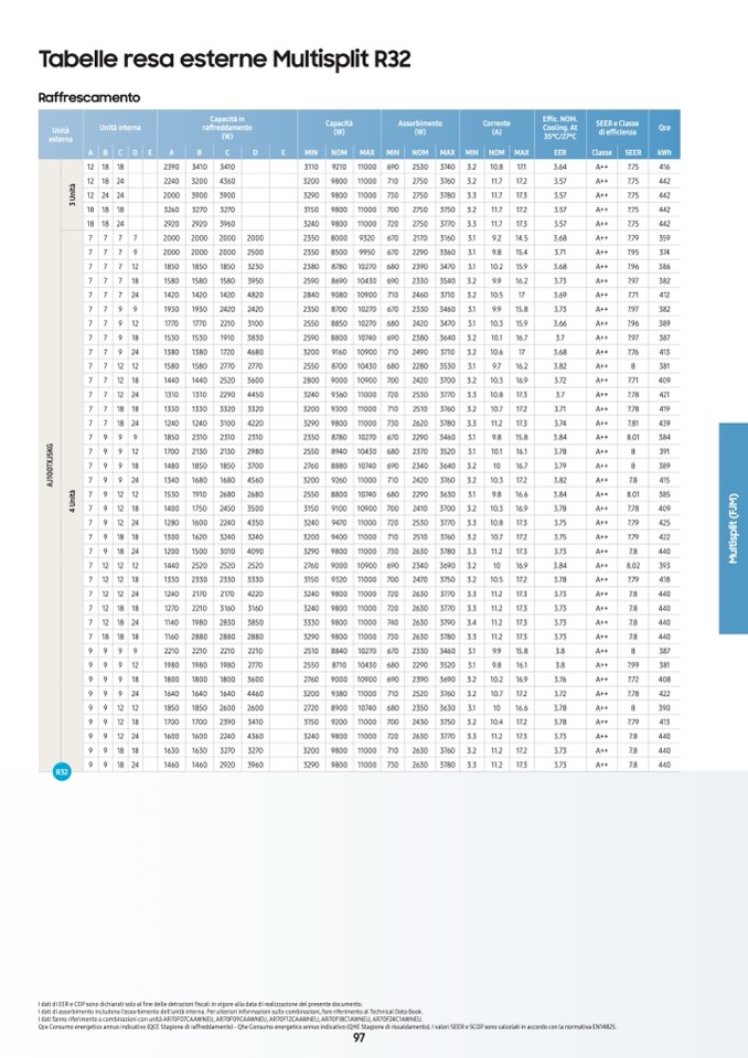 I dati di assorbimento includono l’assorbimento dell’unità interna. Per ulteriori informazioni sulle combinazioni, fare riferimento al Technical Data Book.