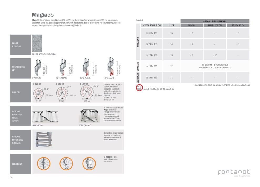 Magia55 ha un’altezza regolabile tra i 232 e i 353 cm. Per arrivare fino ad una altezza di 353 cm è necessario