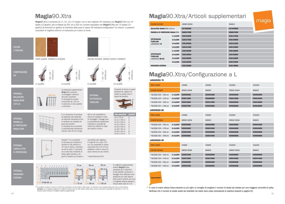alzate (13 gradini), per un’altezza da 261 cm a 325 cm, occorre acquistare una Magia90.Xtra con 15 alzate (14