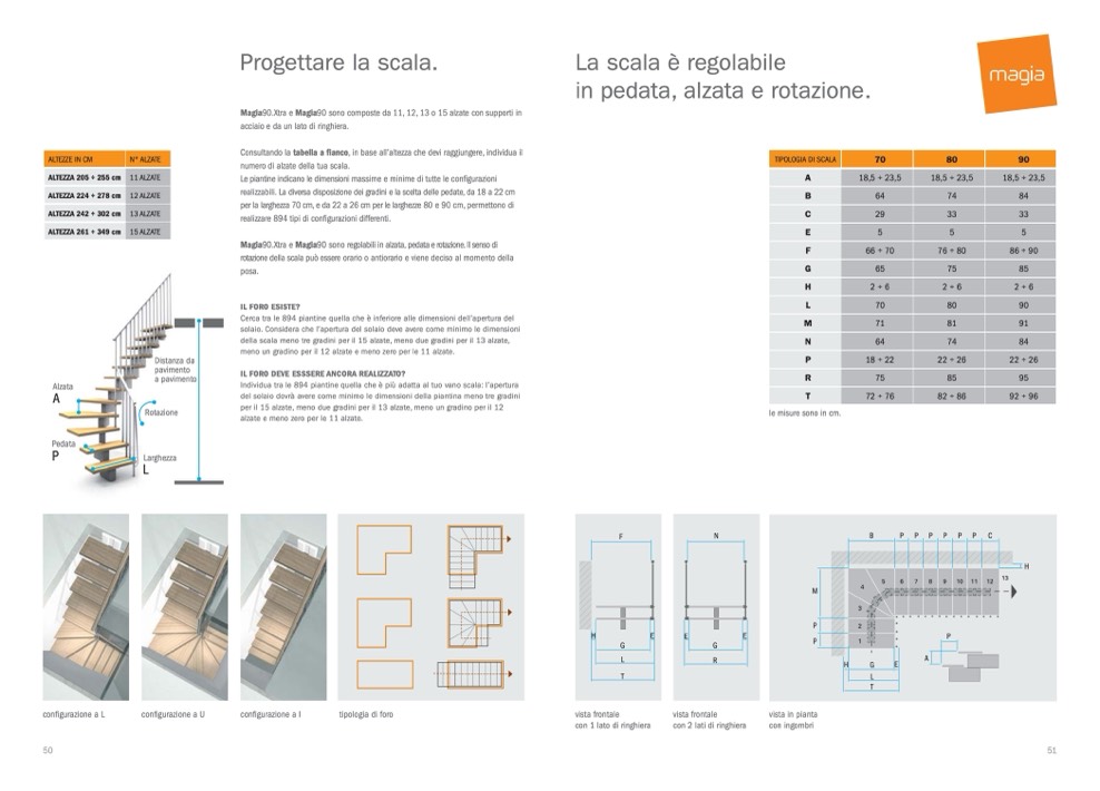 Magia90.Xtra e Magia90 sono composte da 11, 12, 13 o 15 alzate con supporti in