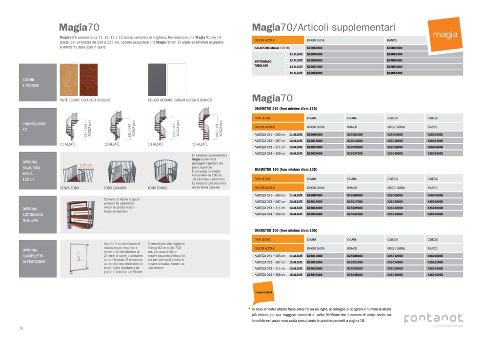 Magia70 è composta da 11, 12, 13 o 15 alzate, completa di ringhiera. Per realizzare una Magia70 con 14
