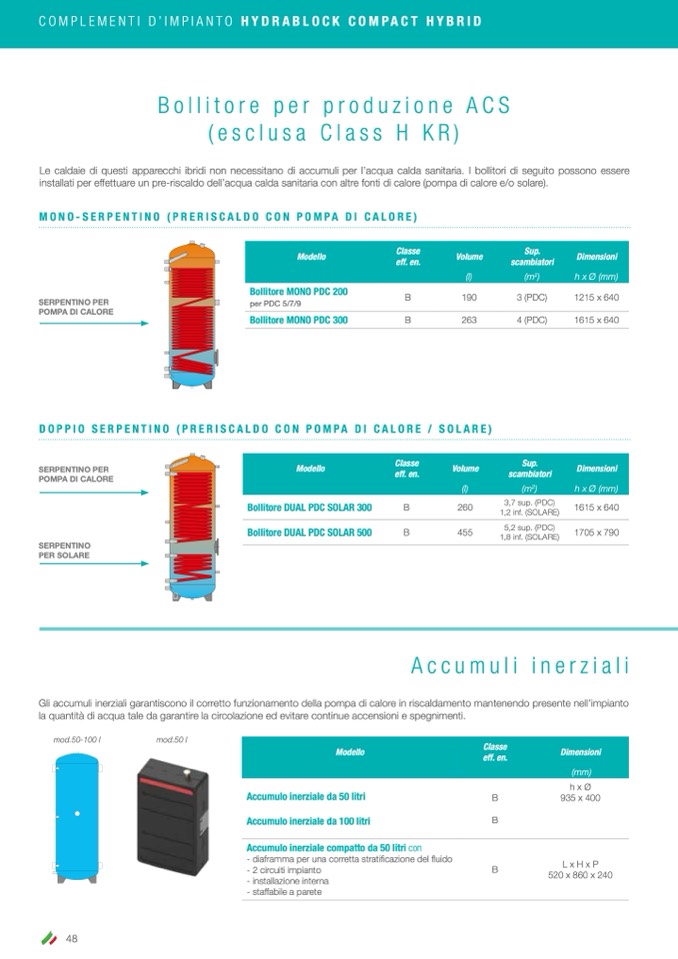Le caldaie di questi apparecchi ibridi non necessitano di accumuli per l’acqua calda sanitaria. I bollitori di seguito possono essere