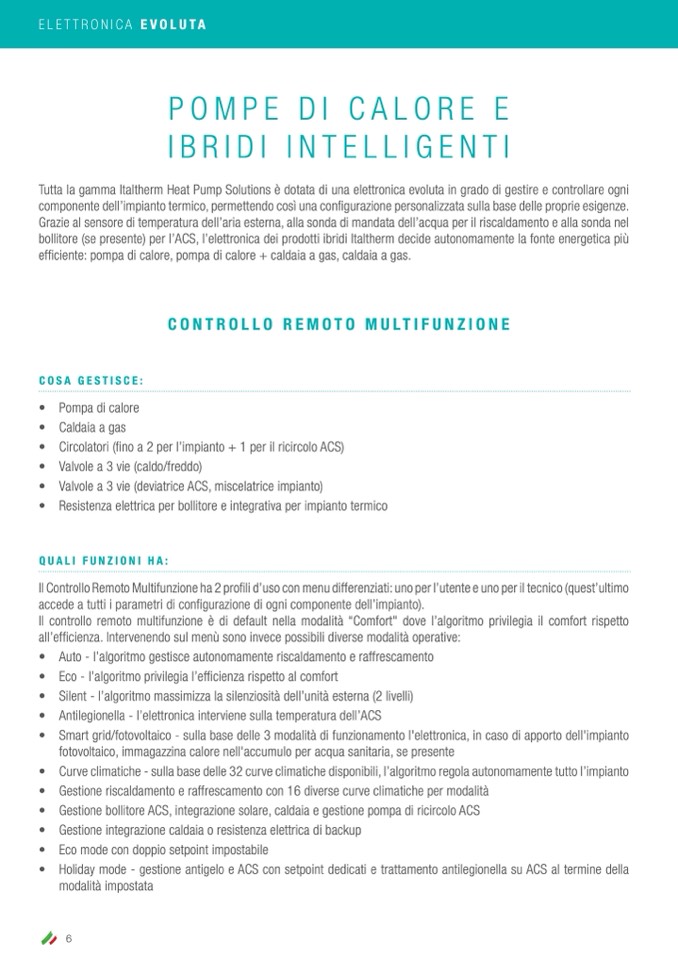 bollitore (se presente) per l’ACS, l’elettronica dei prodotti ibridi Italtherm decide autonomamente la fonte energetica più