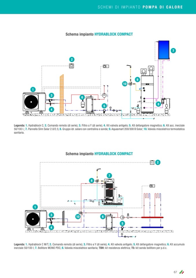 inerziale 50/100 l; 7. Bollitore MONO PDC; 8. Valvola miscelatrice sanitaria; TBH: kit resistenza elettrica; T5: kit sonda bollitore per p.d.c.