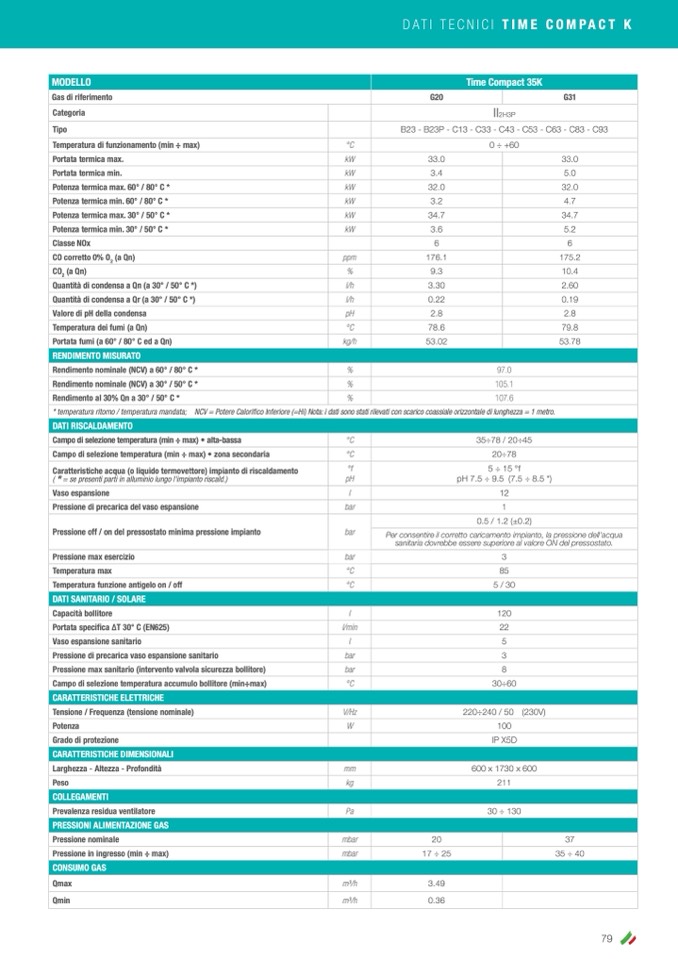 * temperatura ritorno / temperatura mandata; NCV = Potere Calorifico Inferiore (=Hi) Nota: i dati sono stati rilevati con scarico coassiale orizzontale di lunghezza = 1 metro.