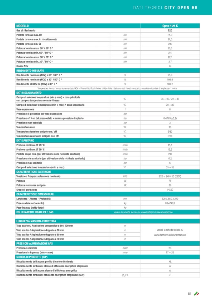 DATI TECNICI CITY OPEN HK