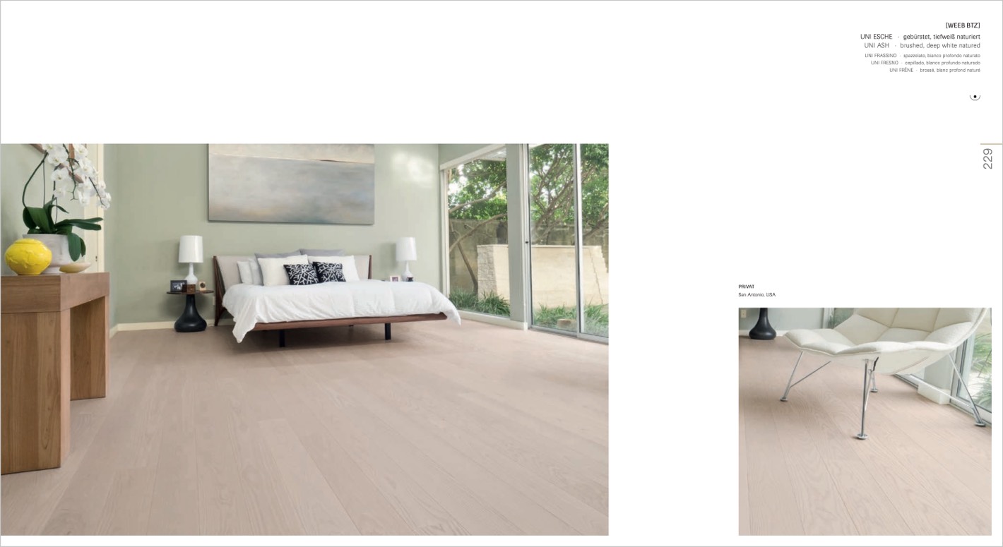 UNI ESCHE · gebürstet, tiefweiß naturiert