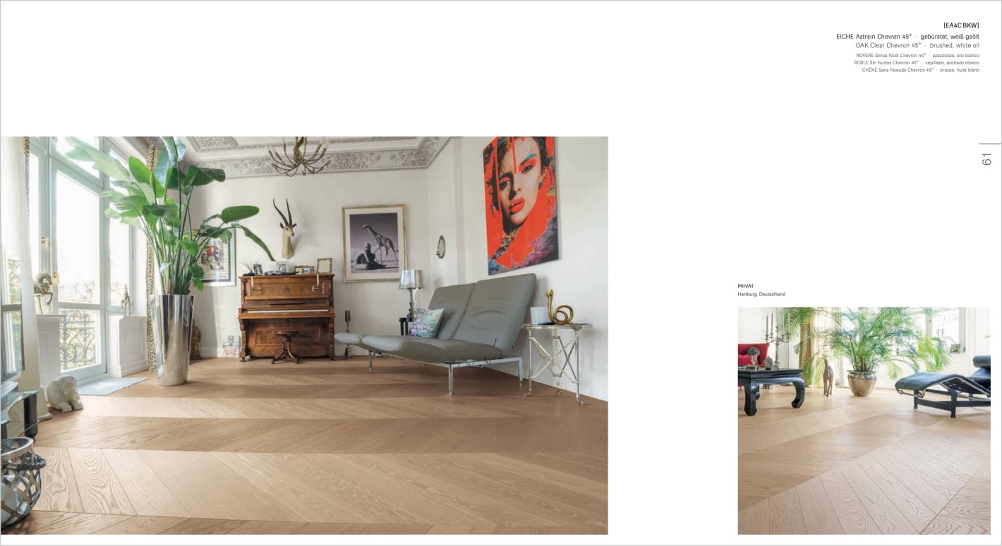 EICHE Astrein Chevron 45° · gebürstet, weiß geölt