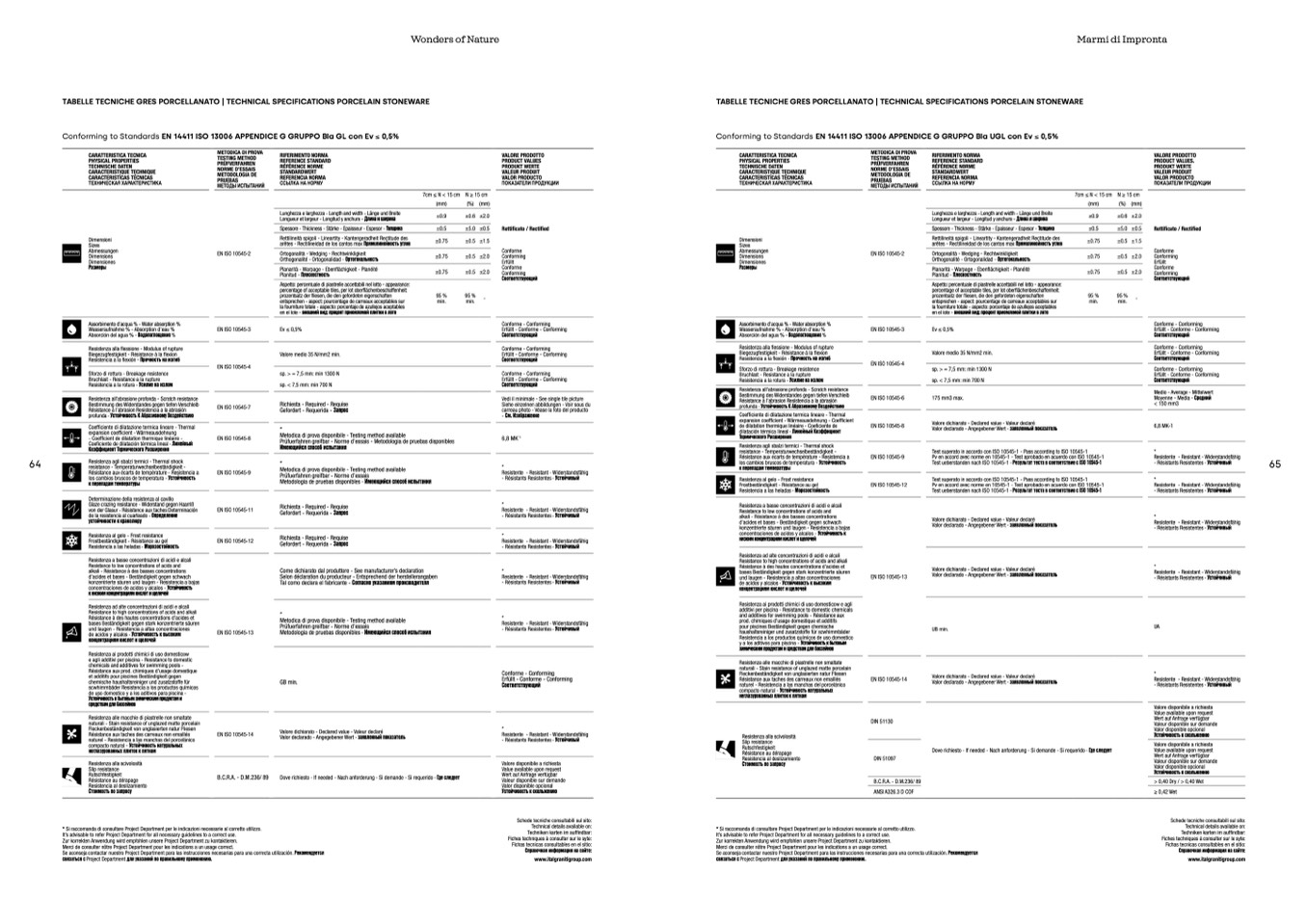 TABELLE TECNICHE GRES PORCELLANATO | TECHNICAL SPECIFICATIONS PORCELAIN STONEWARE
