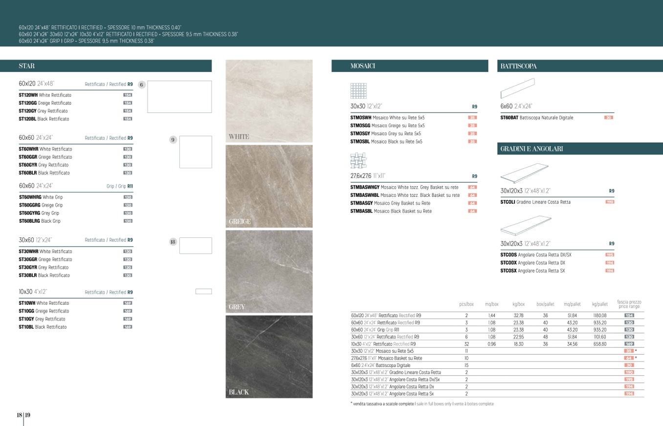 60x120 24”x48” Rettificato Rectified R9