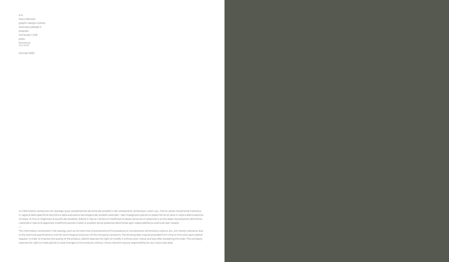 richiesta. Al fine di migliorare la qualità del prodotto, Edonè si riserva il diritto di modificare lo stesso senza alcun preavviso e anche dopo l’accettazione dell’ordine.