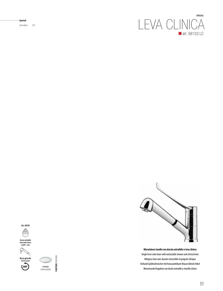 Miscelatore lavello con doccia estraibile e leva clinica