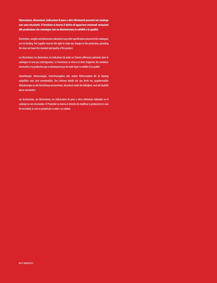 Illustrations, weights and dimensions indicated or any other specifications present in the catalogues